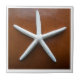 Fotografi av stjärnfisk på brunt läderbakgrund.