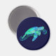 En hotad havssköldpadda som målas i havsblues och gröntar.