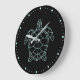 Modern och roligtens väggklocka har en svart bakgrund med havsköldpadda från neon aqua och ansikte från stil.