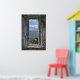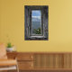 En övertygande havsvyeffekt skapas här av det väderstensfönster som ett slott i Skottland har. Den läskiga grenar i ett träd i förgrunden leder öga ner till havet nedanför. Himlar är blått och har moln. Det här falska fönstret hjälper dig att tro att du bor i ditt eget slott vid havet!