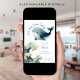 Sea You Soon Whale Ocean Baby Shower white. Available digitally and printed. Easily personalise the text to your details. With a watercolor illustration of a whale and wave.