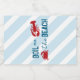 Boil on the beach! Seafood boil bachelorette weekend with a crab and lobster against a coastal blue striped background