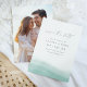 Elegantens kustnära bröllop spara datum har en ren skaldjursfärgad grönt längs grund med en graciös kurva som framkallar havsbotten och havsflödet. Dina uppgifter om bröllop visas i minimalistiska klassiska bokstäver med handskrivna skriptaccenter. Lägg till ett lodrät- eller porträtt-orienterat foto på baksidan.