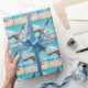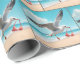 A seagull flies gracefully over a sandy beach, clutching a red and white polka dot bikini top in its beak