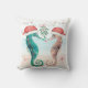 Kusttemat Julbomull dekorativ kudde har ett sjöfärspar med vattenfärg på stranden som bär julhattar och kyssar under mistletoe. Besök min "Seahorse Coastal God Kiss"-samling för att samordna inbjudningar, party-förråd, dekor med mera. Art av KL Lagrar.