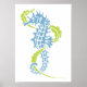 Blå, grön kalk och sjögräs på vita bakgrundsbarn poster utskrift.