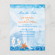 Ett vackert sjöhäst par, stjärnfisk, vågar och bubblor i blå skuggor illustrerade på personligt bröllp Spara postkort för datum. Perfektens strandtematdesign för FESTIVE OCEANFRONT BRÖLLOP | SOMMMER DESTINATION WEDDING eller WHIMSICAL SEASIDE BRÖLLOP CEREMONY! (Du hittar de bröllop-essentialer och -favörer som passar i den här butiken, Möhippa himlen. Kontakta ujean4791@gmail.com för anpassningsbar och/eller samordning av bröllop-kontorsmaterial.)