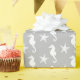 Seahorse & sjöstjärna - vit på silvergrå färg presentpapper