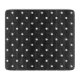 Seamless black and white polka dot pattern with evenly spaced small white circles against a dark background.