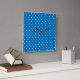 Seamless blue background pattern featuring evenly spaced, small white polka dots.