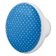 Seamless blue background pattern featuring evenly spaced, small white polka dots.
