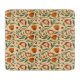 Seamless floral pattern featuring orange and red flowers with green leaves on a beige background. The design is vibrant and decorative.
