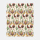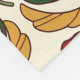 Seamless floral pattern with red and yellow stylized flowers and green leaves on a beige background, creating a vintage and ornate design.