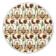 Seamless floral pattern with red and yellow stylized flowers and green leaves on a beige background, creating a vintage and ornate design.