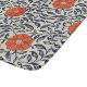 Seamless floral pattern with vibrant orange flowers and navy blue leaves on a beige background, creating an ornate, symmetrical design.