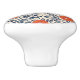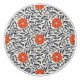 Seamless floral pattern with vibrant orange flowers and navy blue leaves on a beige background, creating an ornate, symmetrical design.