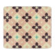 A seamless geometric pattern with cream, beige, and mint green shapes. Bold, dark brown floral designs form a repeating diamond grid. Retro vibe.