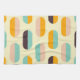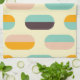 A seamless geometric pattern features vertical, oval shapes in soft yellow, teal, peach, orange, and brown, creating a retro, playful vibe.