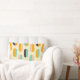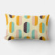 A seamless geometric pattern features vertical, oval shapes in soft yellow, teal, peach, orange, and brown, creating a retro, playful vibe.