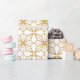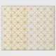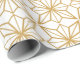 Seamless geometric pattern with intricate eight-pointed stars in a golden hue on a white background. The design conveys elegance and symmetry.