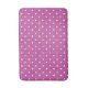Seamless repeating pattern of small white polka dots evenly spaced across a vibrant magenta background.