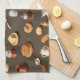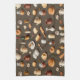Seamless pattern of breakfast and tea sets on a dark brown background