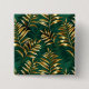 Seamless pattern of gold, jewelry, shiny fern branches and leaves on green, woodland, textured background. Golden fern.