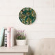 Seamless pattern of gold, jewelry, shiny fern branches and leaves on green, woodland, textured background. Golden fern.