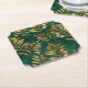 Seamless pattern of gold, jewelry, shiny fern branches and leaves on green, woodland, textured background. Golden fern.