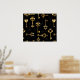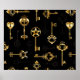Seamless pattern of antique, gold and silhouette keys on black background.
