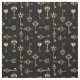 Seamless pattern of antique, gold and silhouette keys on black background.