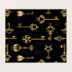 Seamless pattern of antique, gold and silhouette keys on black background.