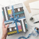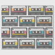 Seamless pattern with retro cassette tapes in dood presentpapper