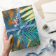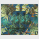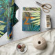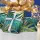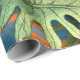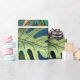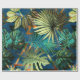 Seamless pattern with tropical leaves and geometric shapes. Tropical background.