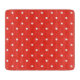 Seamless red background patterned with regularly spaced small white polka dots.