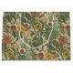 Seamless vintage botanical pattern featuring winding green vines, leaves, and stylized flowers in shades of orange, yellow, white, and muted blue against a beige background.