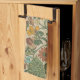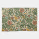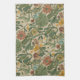 Seamless vintage botanical pattern featuring winding green vines, leaves, and stylized flowers in shades of orange, yellow, white, and muted blue against a beige background.
