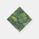 Seamless William Morris style wallpaper pattern featuring dense green foliage and large, rounded flowers in shades of lime green, off-white, and muted lavender against a dark emerald background.