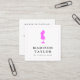 affärskorten för chic av elegant för sjömän, designer i mode, skräddare, omformningsföretag eller formgivare av kostymer har en mannequin silhouette i lysande fluorescerande rosa och en ram som ser ut att syna på en minimalistisk vit bakgrund. Två linjer anpassningsbar text i svart för att du ska kunna redigera med ditt namn, din jobbtitel eller din slogan. Anpassa baksidan med din kontaktinformation om fullt och din QR-kod för enkel skanning (alternativ för borttagning). En del av en samling som innehåller matchande klistermärken, totes, planner med mera. Kontakta mig via Zazzle-chatta för att få anpassningsbar-symboldesign. ©Marisu Valencia