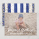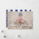 Använda din favoritbild på stranden för att skapa ett vackert julkort på roligten. "Seas och Hälsning" i ett roligt skript kompletterar ditt anpassade meddelande vid grund. Guld glitter är sprinklat över grund. Baksidan har ett marint rand med guld konetti-utskrift som passar perfekt med glam-strandtemat.