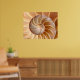 Seashell-foto med tät foto av insidan av en kamouterad nautilus-snäcka i vackert jordton färg. Unikt foto som visar naturens arkitektoniska skönhet som du kan poster i ram eller använda.