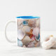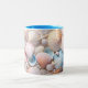 Seashell Kaffe Mugg med tips om blått, rosa och orange färg.