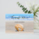 En unik bröllopsinbjudan med ett årstidsskal som har en naturlig hjärtform. En perfekt symbol för kärlek för firande i kärlek. Snäckan är omgiven av sand med vinkart hav i avstånd som skapar perfekten för strandbröllopet.