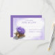 Svarskort från Watercolor inspirerade lila-strandbröllop till komplimanger med ömtåliga lila-vattenblommor som fyller en tropisk snäcka. Skuggor av lila vattenfärgsbakgrund och ram för att komplimentera blommorna.