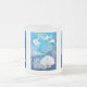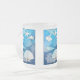 En bild av seashells med aqua vatten av konstnären/designern Charmaine Paulson på ett mugg av glas.