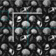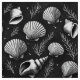 Fabric i seasheller delikat sjögräs mönster på svart bakgrund, skapande en slående kontrast. Det detaljerade arbetet på linjen ger en komplicerad och naturalistisk känsla till sammansättningen.