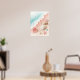 Beautiful aerial view of seashells and starfish on pink sandy beach with aqua waves. Charming coastal watercolor perfect for beach house, bathroom, nursery, or bringing beach vibes indoors.