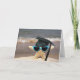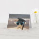 Starfisk på stranden med svart studentmössa och solglasögon.