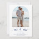 din bröllop-dejt med vänner och familj med det här snyggten moderna spara-the-date-kortet. Den blå typografin Mr. och Mrs. Arch-fotodesignen har anpassats med din favoritbild av förlovningen och kommande bröllop-detaljer.