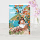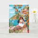 Seaside Café Woman Illustration Art Greeting Card Kort